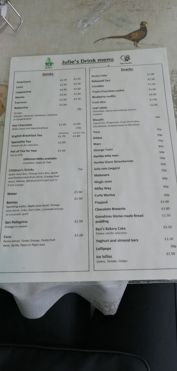 Julie's menu is a celebration of classic café fare, complemented by some adventurous specials that keep things exciting. On a typical visit, you might find yourself indulging in their avocado on toasted sourdough, which is not just a dish but a testament to their commitment to quality ingredients and careful preparation. The lusciousness of perfectly ripe avocado paired with the crunch of golden sourdough creates a symphony of flavors that dance on the palate. Or perhaps you're in the mood for a hearty small English breakfast, a generous spread of bacon, eggs, and beans that captures the essence of traditional British cuisine.